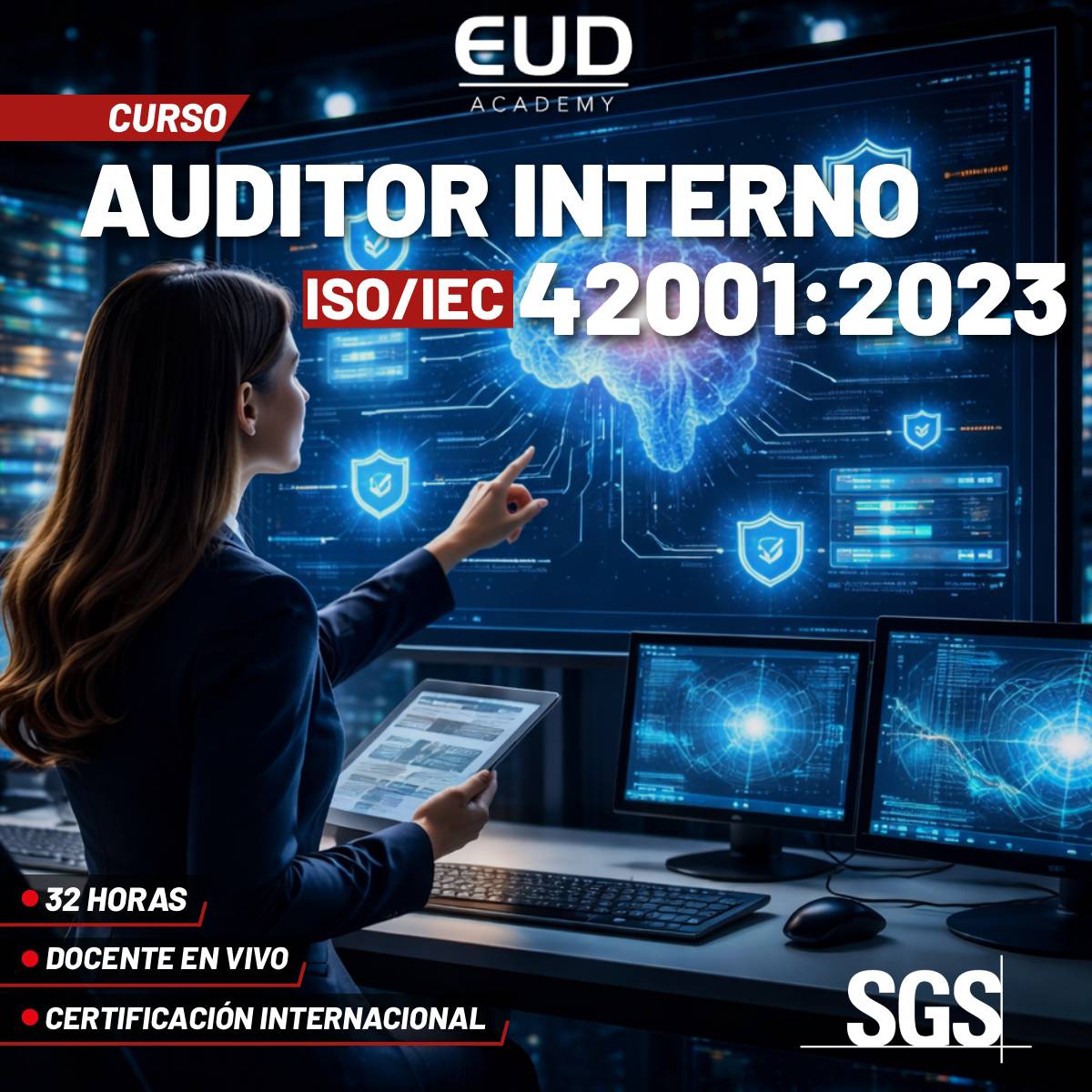 Desarrollar una comprensión integral y aplicada de los requisitos de la norma ISO/IEC 42001:2023, para auditar eficazmente sistemas de gestión de IA, conforme a las directrices de la norma ISO 19011:2018, y desempeñarte como auditor interno calificado.